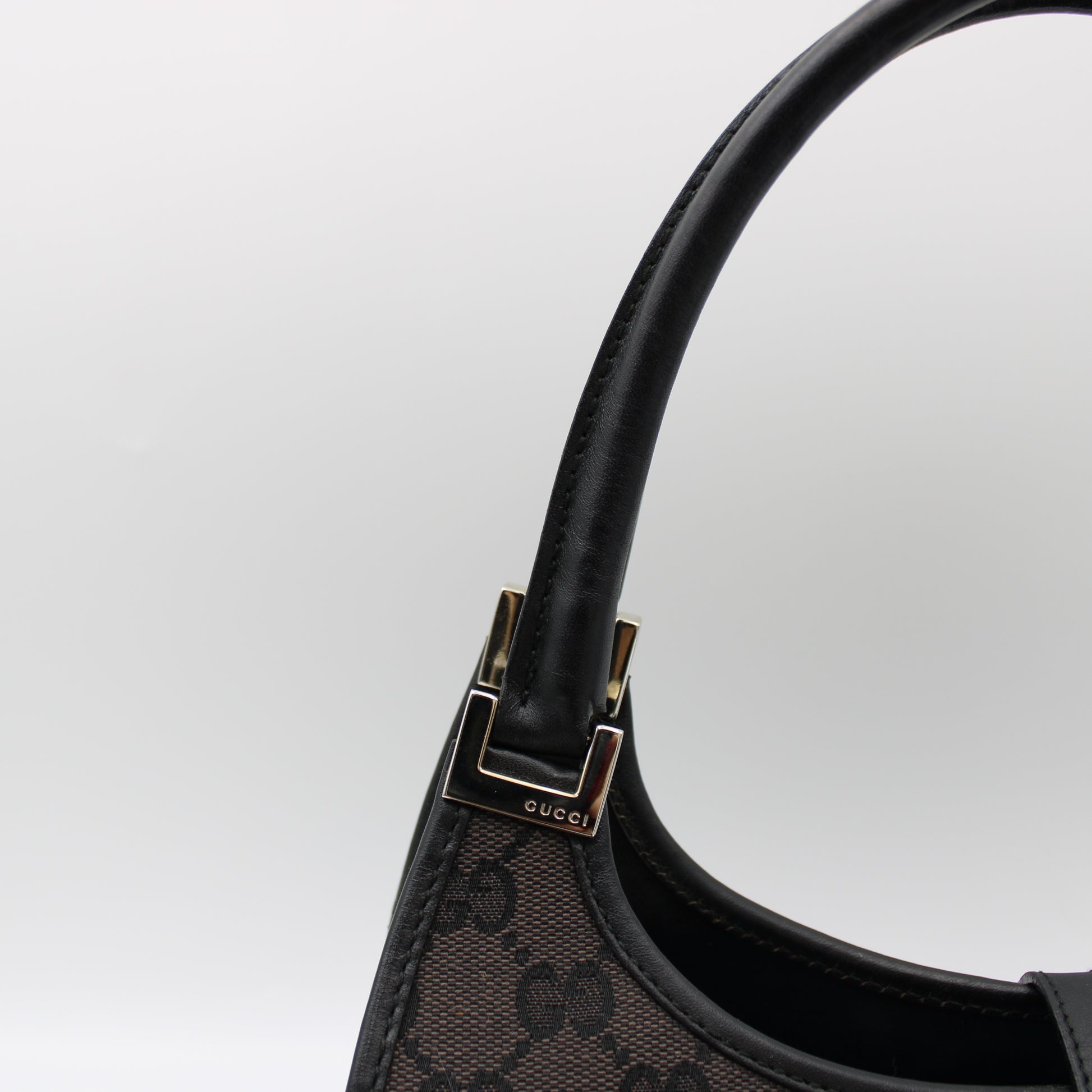 BORSA GUCCI JACKIE BARDOT TELA MARRONE E PELLE NERA