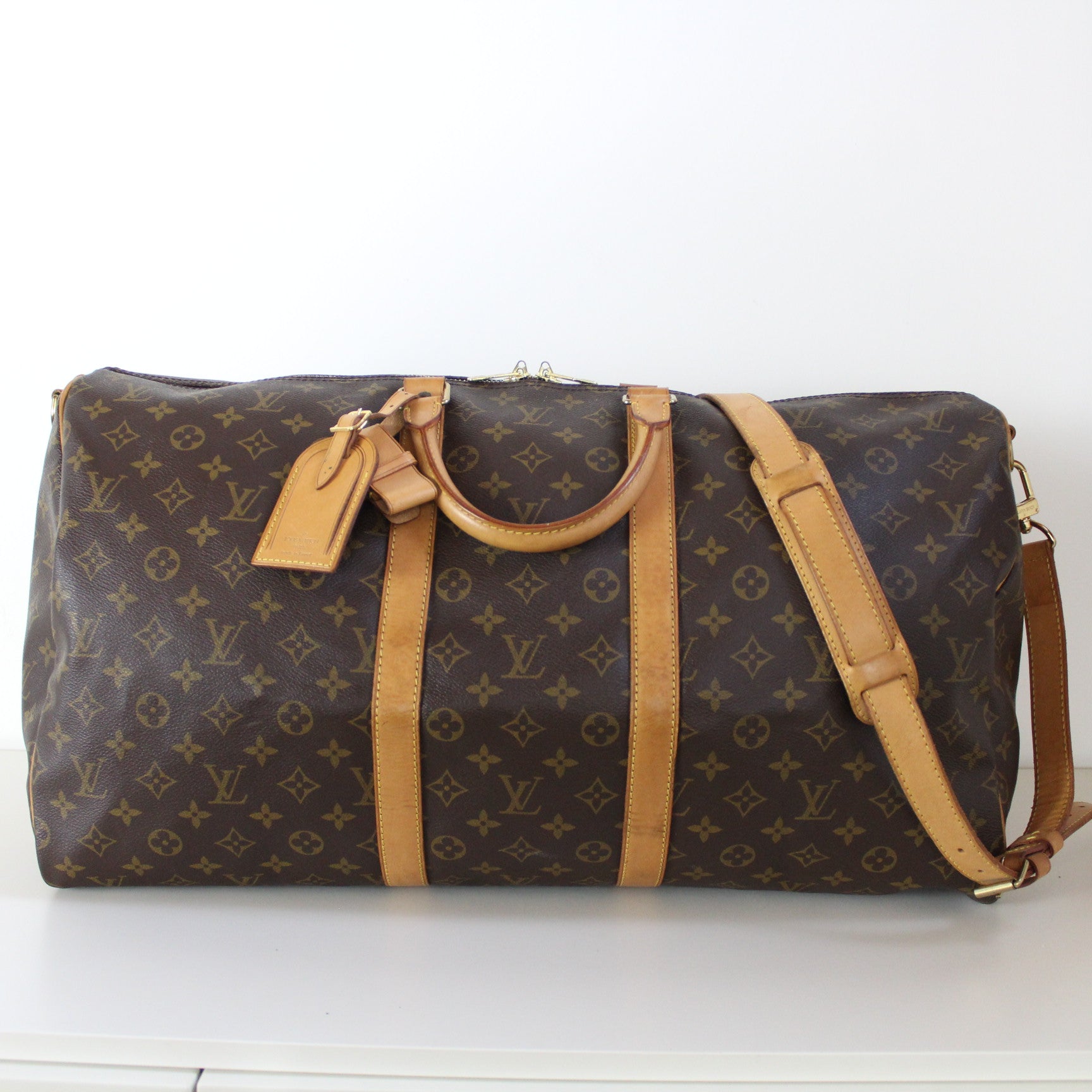 La versione 55 della famiglia Keepall in tela Monogram presenta un interno spazioso che si chiude con una doppia cerniera. Leggera ed elegante, si porta facilmente a spalla grazie alla comoda tracolla regolabile e amovibile in vacchetta naturale.