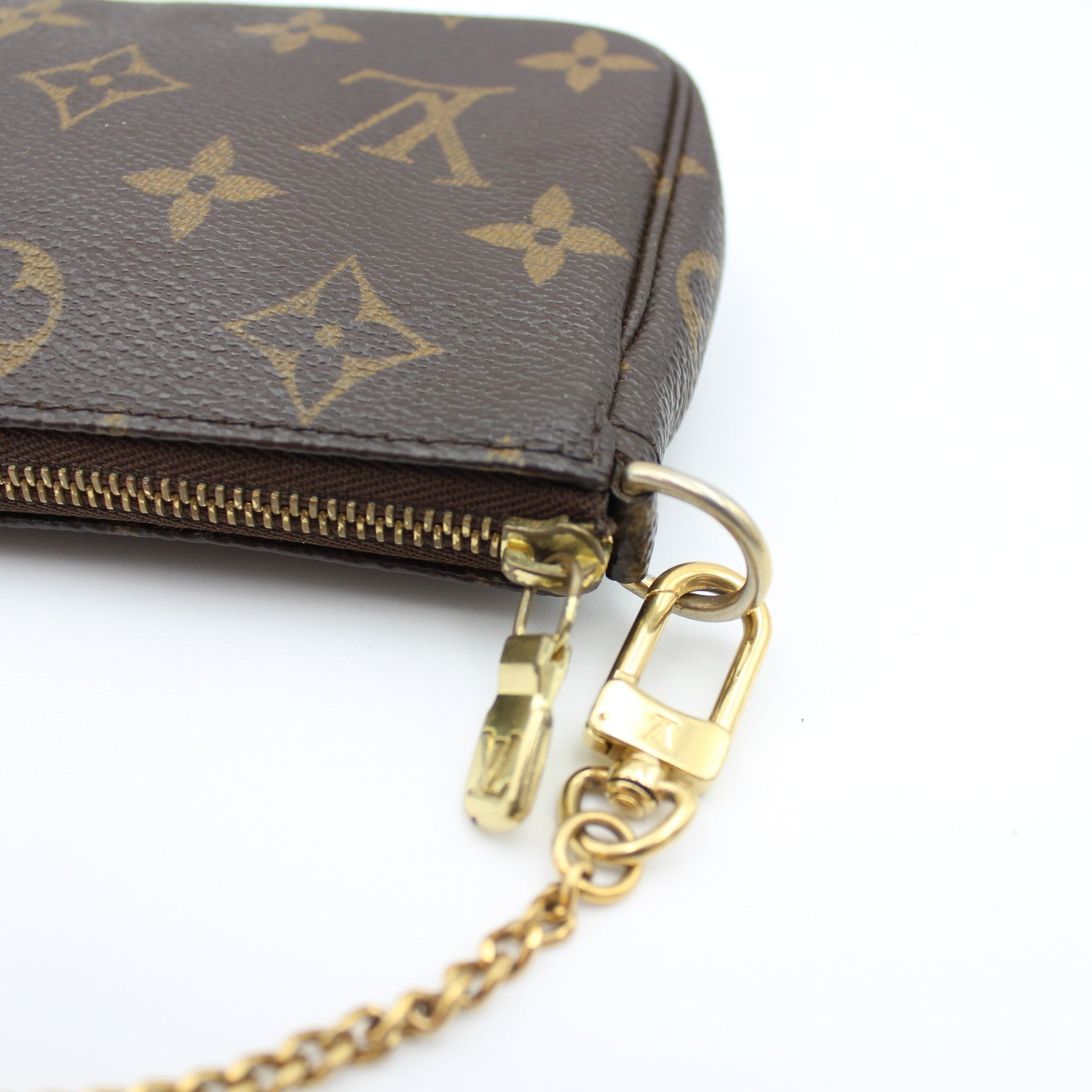 La mini pochette Accessoires in tela Monogram è ideale per riporre gli oggetti di uso quotidiano. L'audace modello con zip presenta un interno ampio e capiente, mentre la catenella e il moschettone consentono di portarlo a mano o agganciarlo a una borsa più grande. La forma arrotondata e il morbido materiale rendono l'accessorio incredibilmente comodo e versatile.